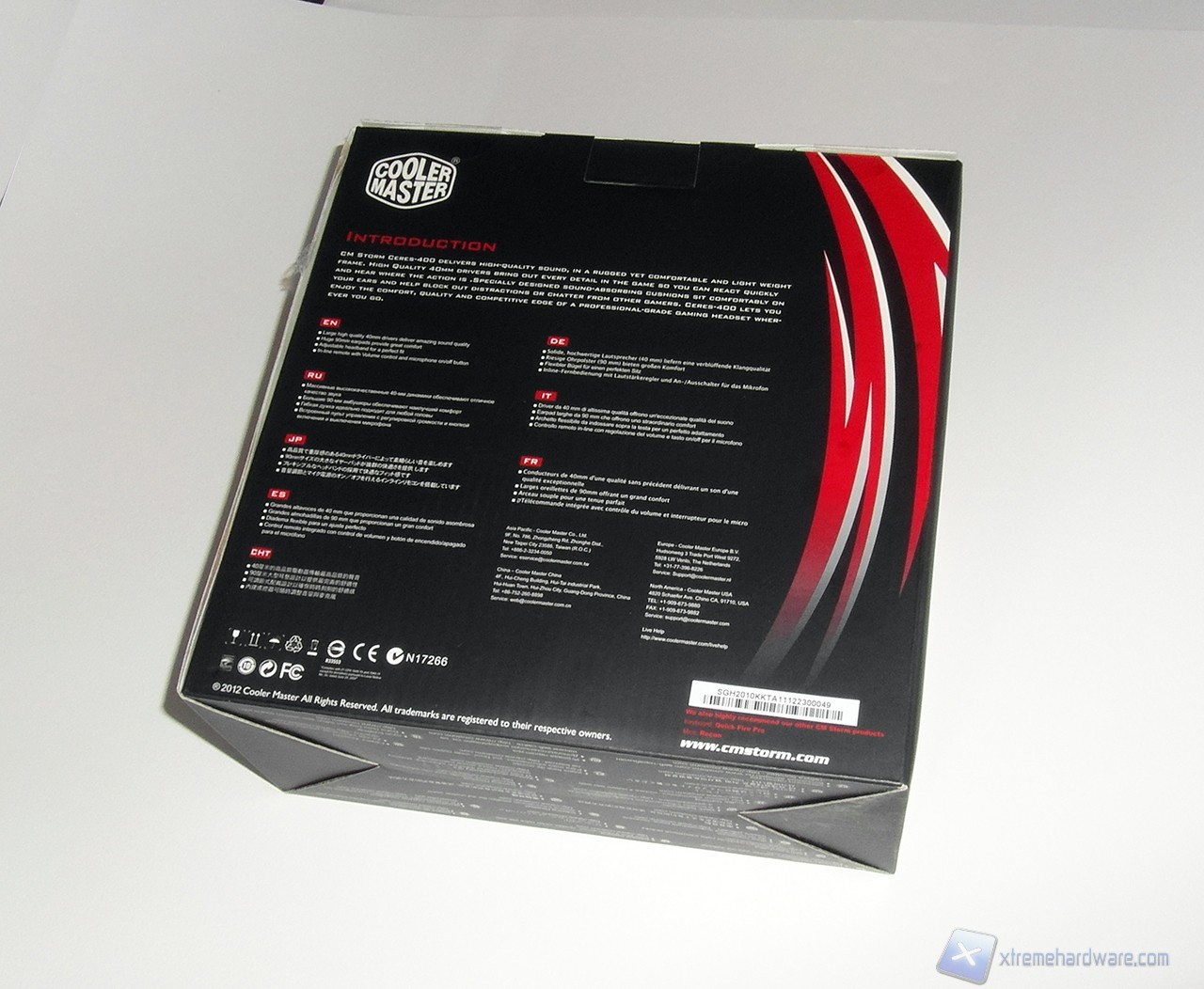 La confezione delle CM Storm Ceres 400 è molto simile a quella delle Sonuz. Nella parte frontale, il cui stile e colori sono ormai inconfondibili, tra nero e fiamme troviamo in primo piano il controllo in-line per volume audio e microfono. La parte sinistra della confezione presenta l'immagine dell'headset, mentre sulla destra la plastica trasparente ci permette di visionare direttamente il lato sinistro delle cuffie, caratterizzato dalla presenza del microfono.