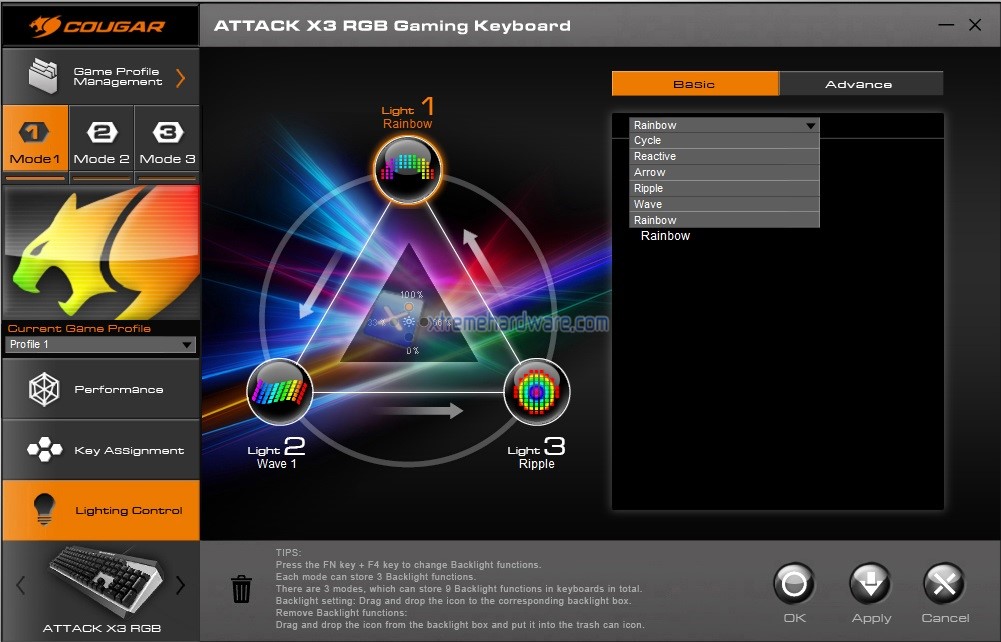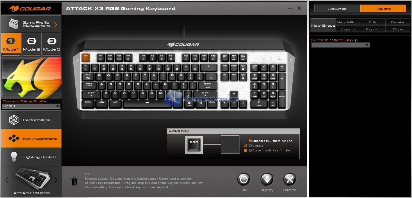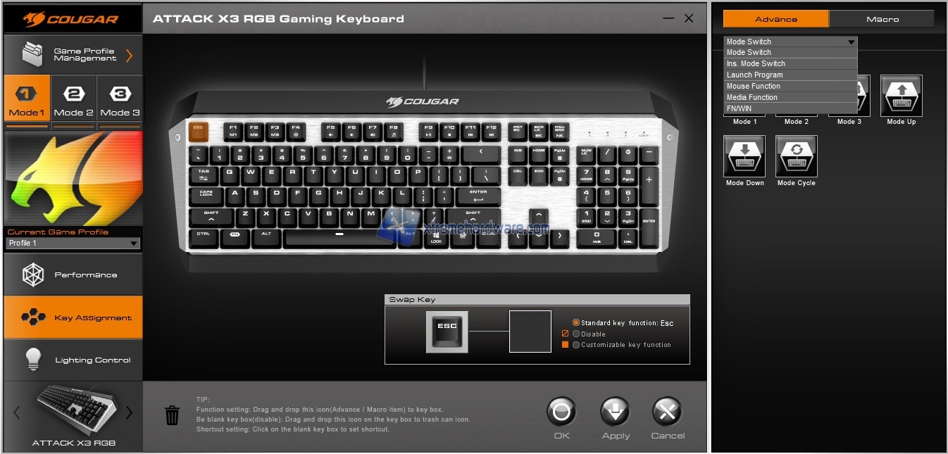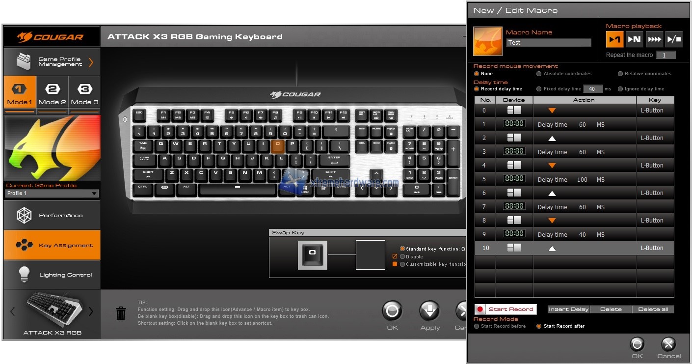 La Cougar Attack X3 RGB così come altre tastiere e mouse della Cougar potrà essere personalizzata fin nel minimo dettaglio tramite il software di gestione Cougar UIX. Software dall’interfaccia semplificata per le principali operazioni ma che cela numerose funzioni e impostazioni di personalizzazione una volta preso confidenza.