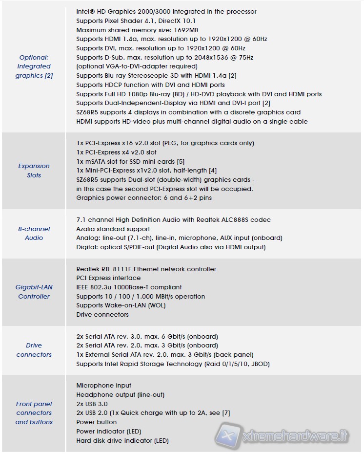 Grazie alle CPU Intel Sandy Brdige è possibile sfruttare la grafica integrata (IGP) Intel HD Graphics 2000/3000 che supportano Pixel Shader 4.1, DirectX 10.1 ed una memoria condivisa fino a 1692MB. Potete leggere di seguito la lista delle CPU supportate aggiornate al mese di gennaio: