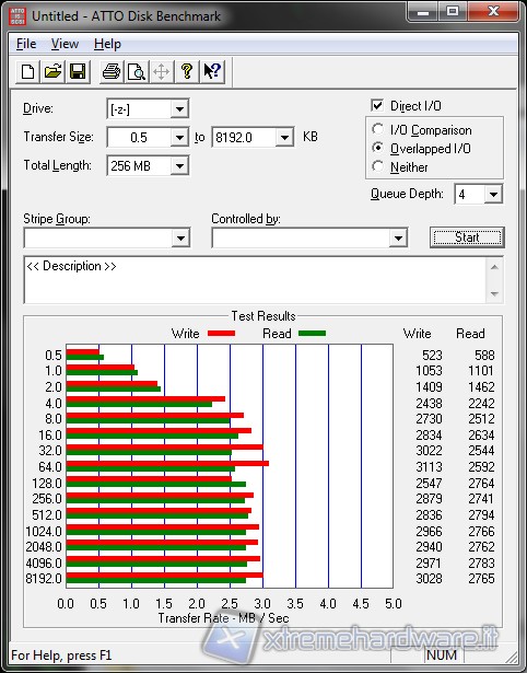 Vediamo ora le prestazioni del disco, ricordiamo nuovamente che il test è stato effettuato su una rete limitata a 100Mbit, limitando le possibili prestazioni di trasferimento del NAS. Per il test è stato usato ATTO, test effettuato connettendo l'unità di rete. Tale voce è presente nel menù di Risorse del computer.